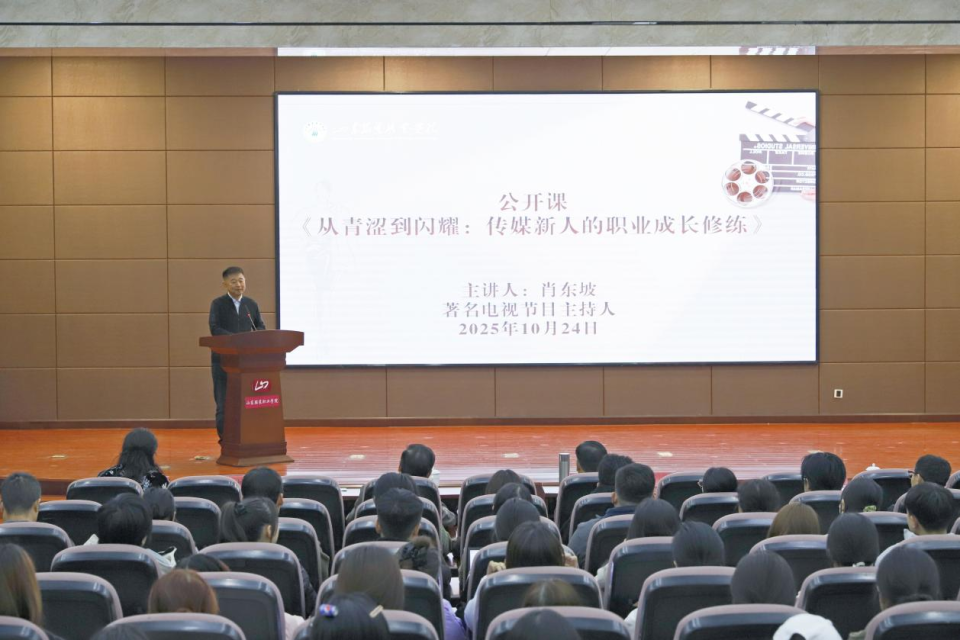 开机仪式结束后,肖东坡以《从青涩到闪耀:传媒新人的职业成长修炼》为题,以亲切、幽默又充满智慧的风格,向大家分享了他在传媒行业工作的经验,为同学们提供了从大学进入传媒行业的宝贵意见。