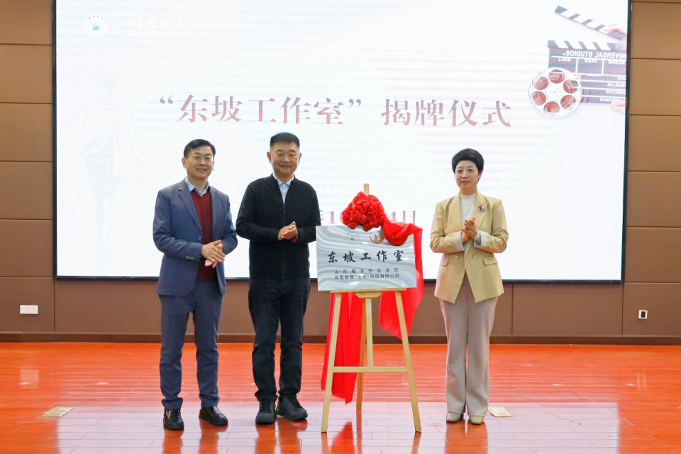 郝燕、刘江波、肖东坡共同为山东服装职业学院“东坡工作室”揭牌