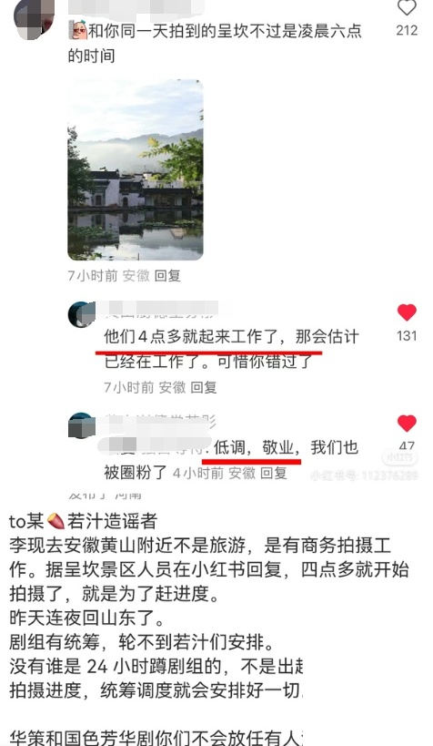 李现的粉丝看到这样的言论后,觉得不公平,便开始为李现辩护。李现的粉丝表示,李现在剧中的戏份并不多,不足以影响剧组的拍摄进度,杀青晚一些是正常的,没有必要把责任推到李现身上。随后,李现的工作室也发表了声明,表示李现在剧组期间,每天都很尽责,也没有耽误拍摄进度。