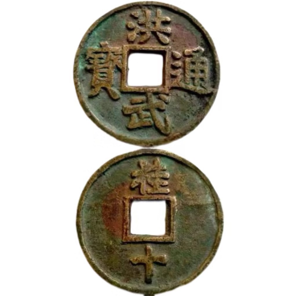 地方造币厂的洪武通宝多 “钱文模糊、铜质粗糙”,而南京宝源局的背十钱是 “明初铸币工艺水准” 的标杆标本 —— 其 “中央版权威属性” 直接推高了收藏价值。