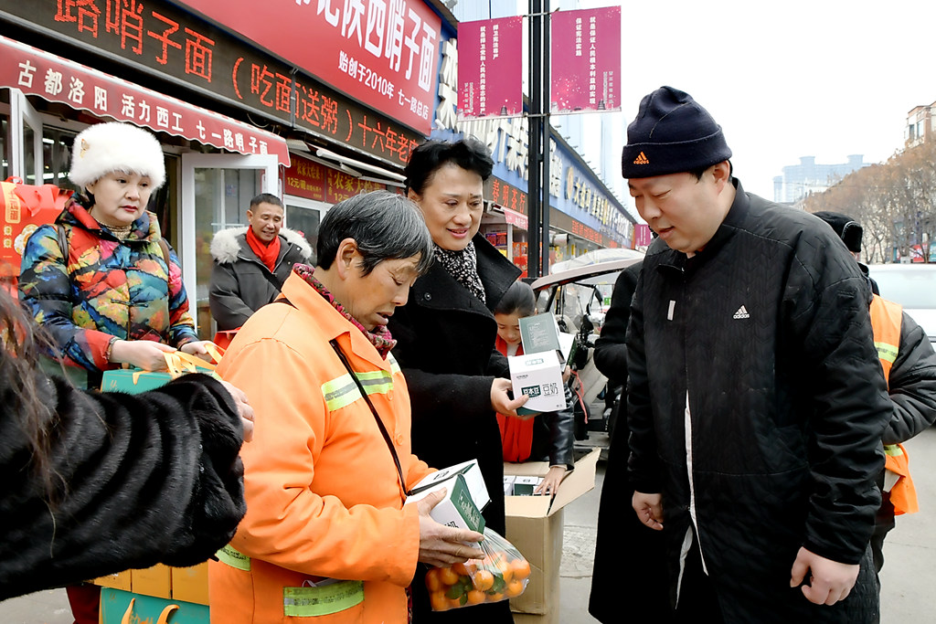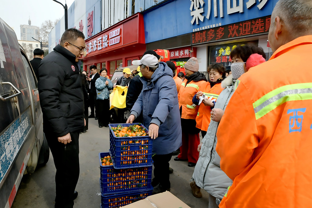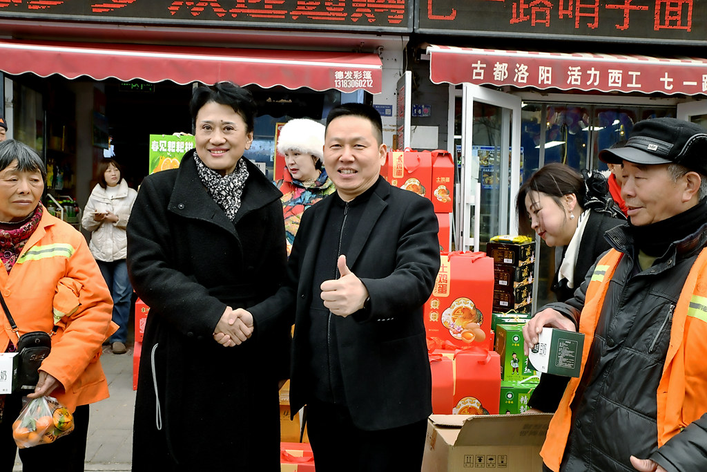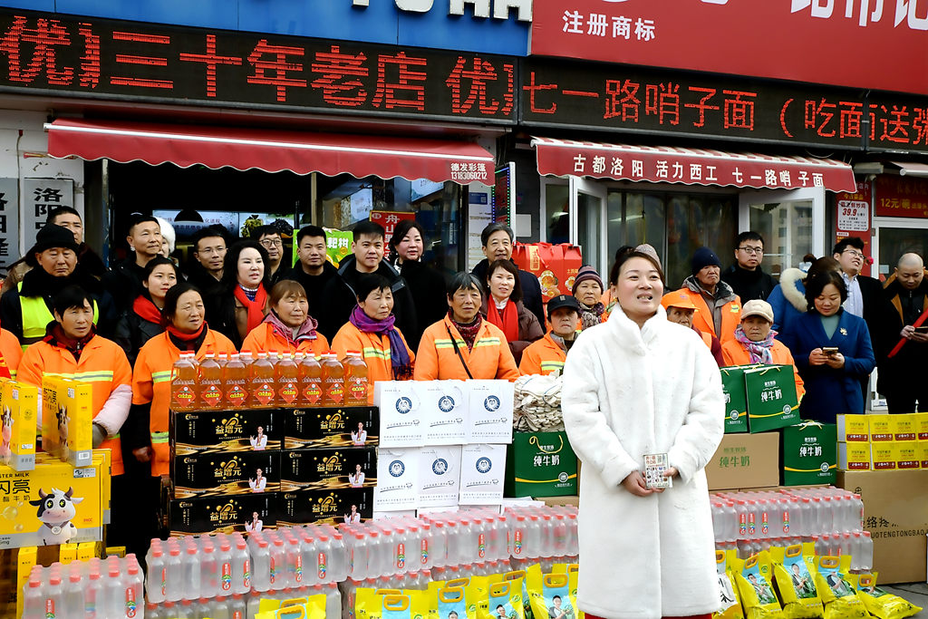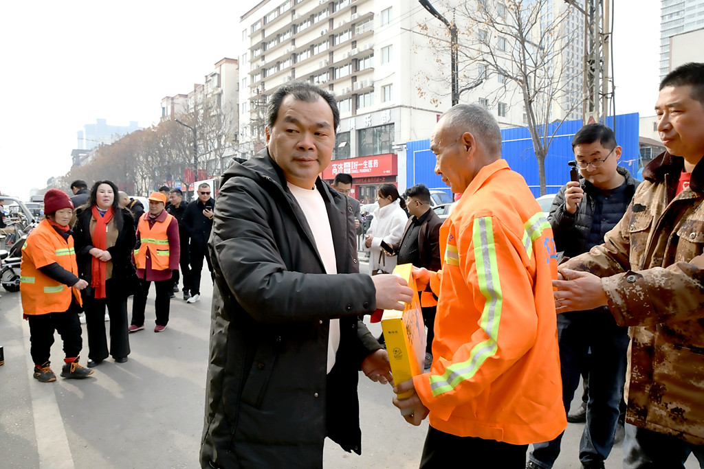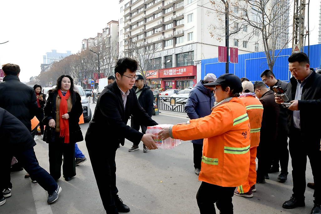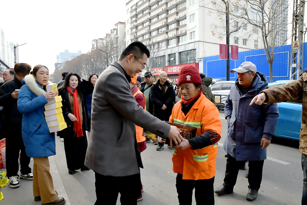 当天上午,协会组织爱心企业及志愿者,来到西工区七一北路栾川山珍干果礼品展厅门前,为坚守在一线的环卫工人送上的慰问品和诚挚的新春祝福。不仅承载着沉甸甸的关爱,更饱含着对“城市美容师”深深的尊重与感激。