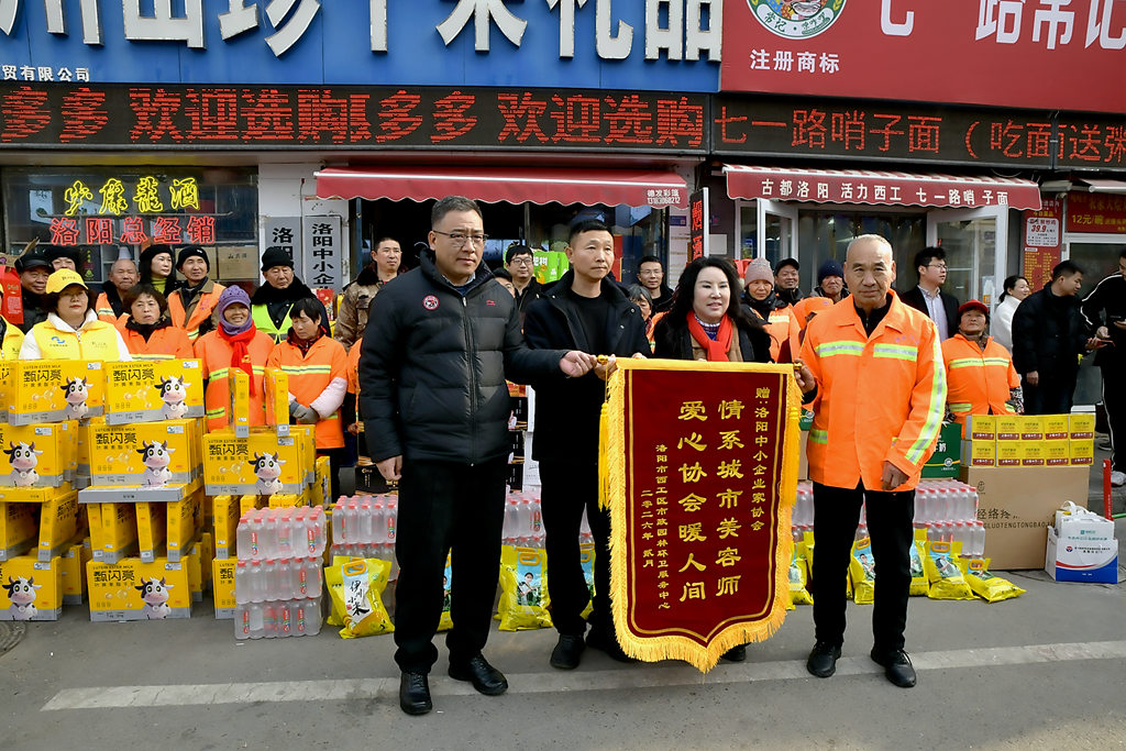 正值中国传统新春佳节来临之际,2026年2月9日,洛阳中小企业家协会组织慰问活动,向辛勤工作在城市一线的环卫工人致以崇高的敬意和诚挚的感谢。活动以"爱心传递,情满人间"为主题,不仅体现了企业家们对城市美容师的关爱,更彰显了社会各界对基层劳动者的尊重与感恩。在这个寒冷的冬日里,一场温暖的爱心盛宴温情上演,为城市增添了浓浓的年味和人情味。