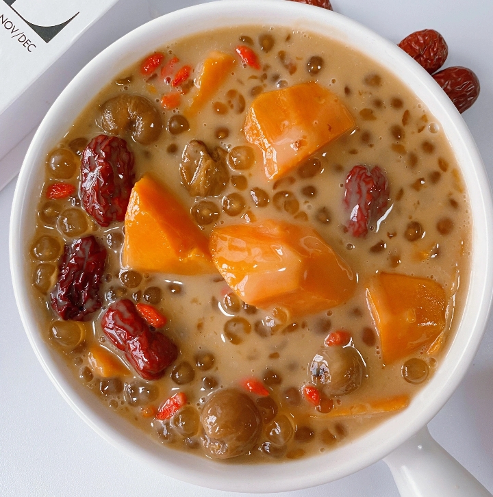 煮得软糯的红薯丁,搭配 Q 弹的西米,浇上椰奶或糖水,清甜不腻还带着淡淡的椰香,饭后喝一碗,滋润又爽口,全家都爱喝!