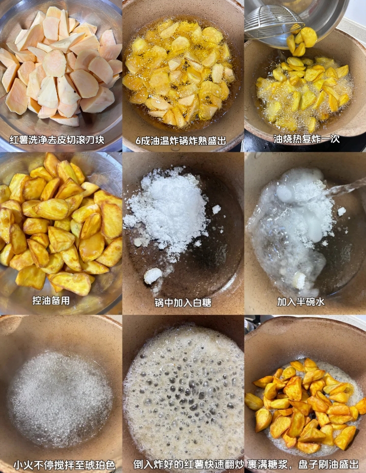 红薯炸到外脆里糯,裹上熬得金黄的糖浆,夹一块能拉出长长的糖丝,甜脆不腻,不管是家人聚餐还是招待客人,都超受欢迎~