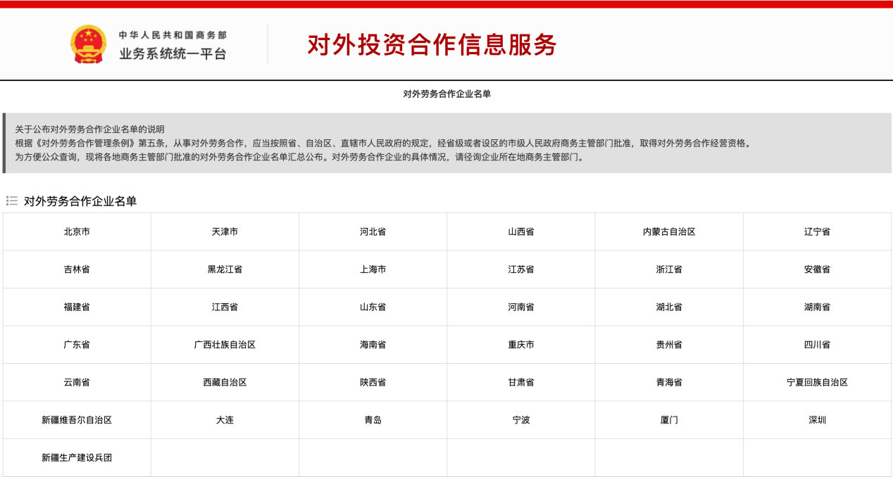 选择中介机构时,务必认准其是否具备商务部资质。大家可以登录商务部官网,按照“机构设置”——“合作司”——“对外劳务合作企业名录”——“企业名单”的路径进行查询。