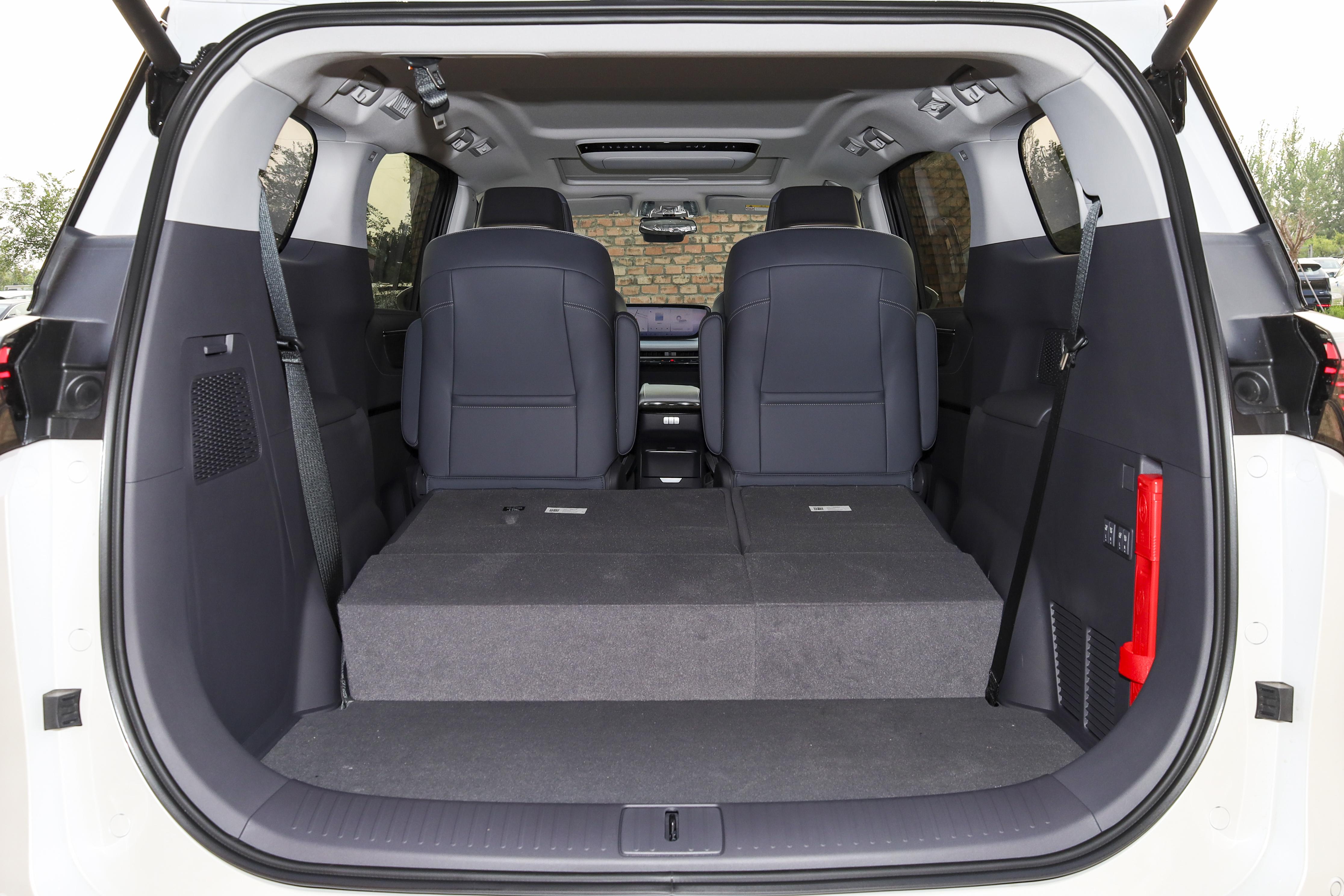 储物和装载能力也很贴合日常使用,常规状态下行李舱容积 521L,平时出门放几个行李箱、背包完全没问题;把第三排座椅按比例放倒之后,容积可以扩展到 1650L,婴儿车、大行李箱、露营装备这些大件都能轻松装下。车内还有很多零散的储物空间,门板、中控台、座椅靠背等位置都能放手机、水杯、证件等小物件,日常带娃或者出门办事,小东西都有地方放,空间利用率很高。