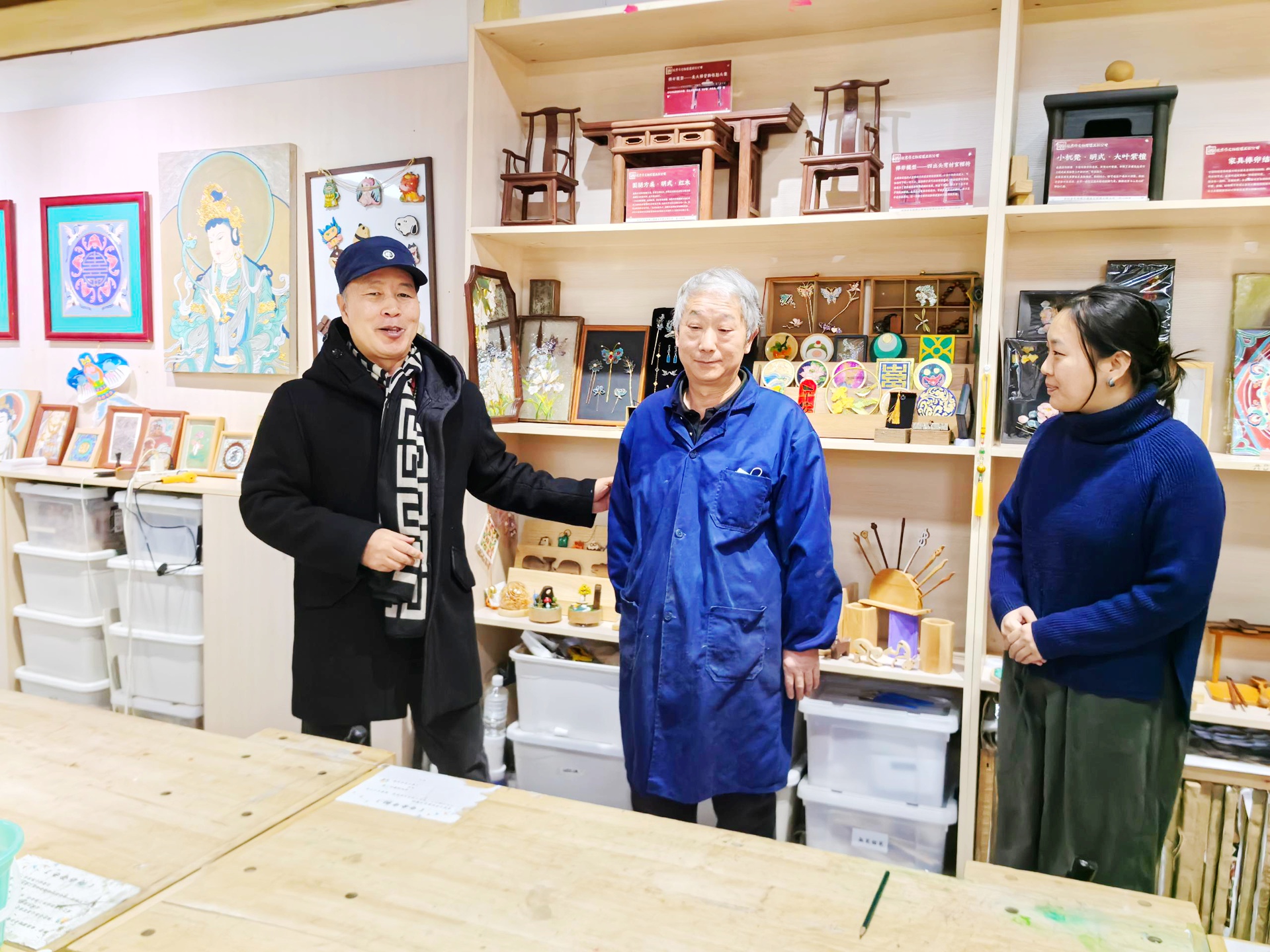 王建省教授的到访,为木工坊的传承实践增添学术助力。其团队与工坊深度交流,讨论了三个维度学研融合。