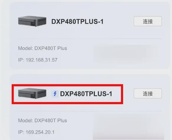 而通过UGOS Pro系统上的雷电直连功能,我只需要用一根雷电线将MacBook Pro和DXP480T Plus的连接口相连就可以实现比万兆网口更快的局域网传输速度。