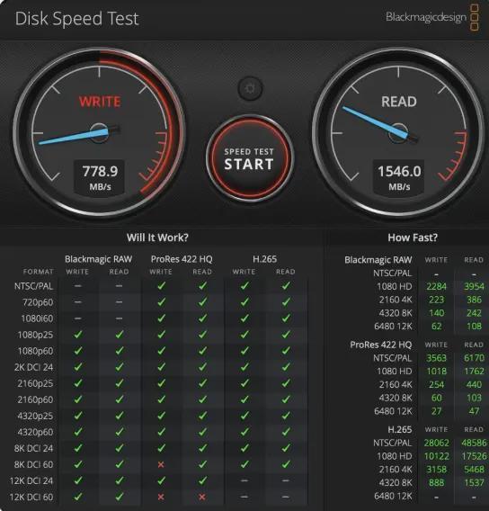 从传输体验来看,极空间T6是满足我的,通过极空间T6的雷电网桥直连我的MacBook Pro,实测写入速度在900MB/s左右,读取速度2000MB/s,写入速度明显是偏低了,另外传输波动也很大,可能是刚发布不久优化还没到位。