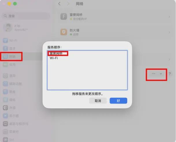 操作也很简单,首先在控制面板-文件服务-高级设置中启用Bonjour服务,接着在mac上的访达-前往-网络,就能选择这台NAS,选择你想要传输的那个文件夹,然后再到mac设置-网络,找到右下角三个点点,点击设定服务顺序,将雷电网桥拖到最前面。