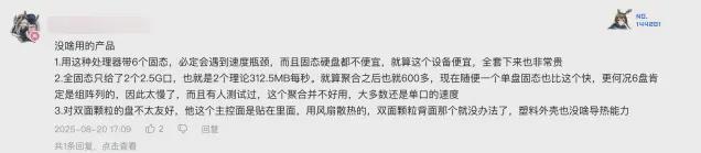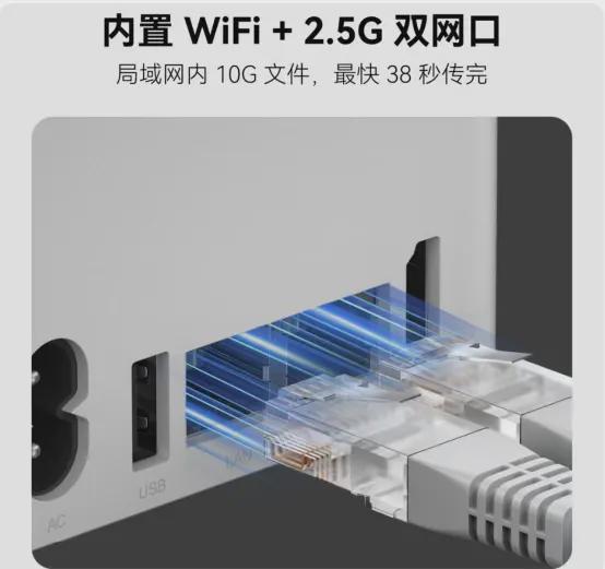 至于飞牛的硬件联盟产品Me mini,除非你是只需要全闪NAS的小体积和静音优势,那可以入手,否则我真的不推荐你购买这款,2.5G听着确实是挺够用的,但当你实际用下来,2.5G网口对于全闪NAS的传输场景真的就是最大的短板了。