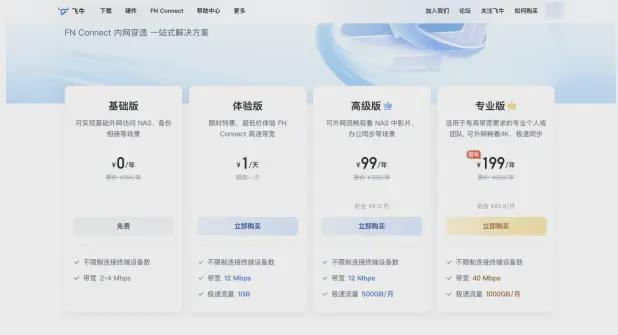 同样地,远程访问服务速度也是我选NAS很重要的原因之一,譬如也有不少老牌厂商出的全闪NAS,但它们的远程访问体验一般,又或者飞牛免费版只有2-4Mbps的,哪怕是全闪定制版赠送5年高级版也是12Mbps,想要更快的40Mbps还得交250/年。