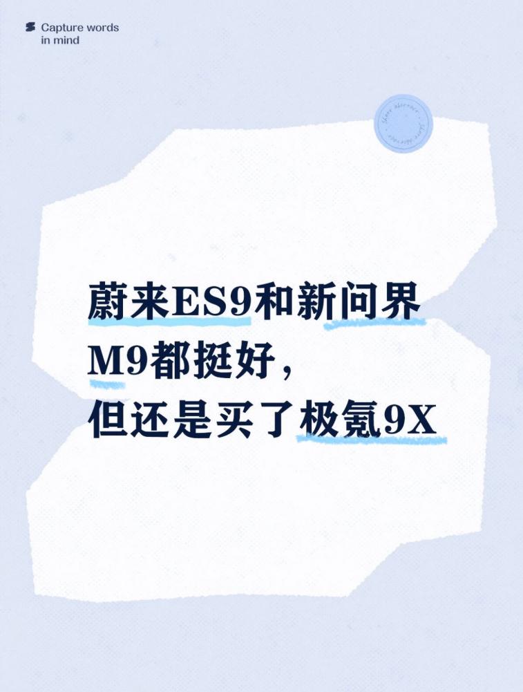 说实话,蔚来ES9的换电、问界M9的智驾,都让我心动过。