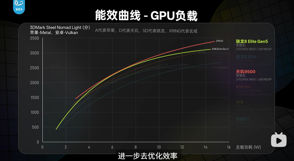 新一代旗舰芯片的竞争,关键已从“极限跑分”转向“量产机的长期表现”。在多项公开实测与第三方基准中,搭载天玑9500的量产机在GPU维度呈现出“性能与能效”同时占优的特征:高负载下帧率稳定、同档功耗更低,能效曲线在主要区间保持领先,峰值与持续表现兼顾。