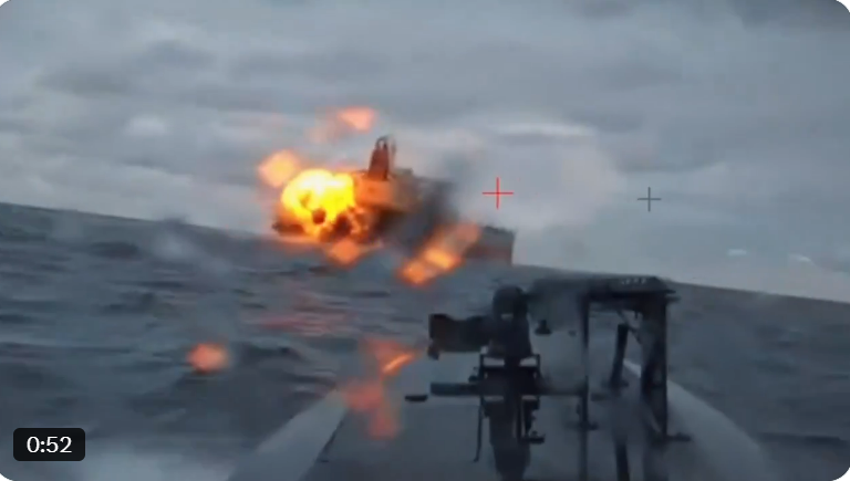 在黑海,乌克兰的“海洋宝贝”海军无人机在击中了俄罗斯影子舰队中的油轮“大珊”。