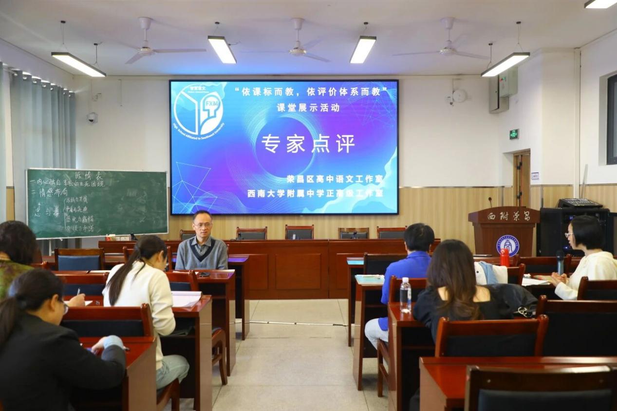 4月17日上午,由荣昌区高中语文学科工作室与西南大学附属中学特级正高工作室联合主办、西南大学附属中学荣昌实验学校承办的《陈情表》同课异构教学研讨活动,在学校万象楼309会议室顺利举行。本次活动旨在深化高中语文教学改革,落实《普通高中语文课程标准(2020年修订版)》要求,探索统编教材的有效教学路径。学校语文教研组全体教师及区内兄弟学校教师代表共同参与观摩研讨。