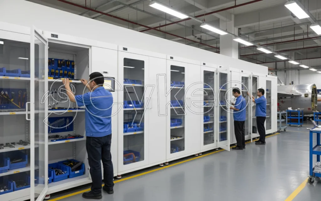 现实中,大多数机务单位仍使用普通铁皮柜、传统工具车,配合人工流程或手动登记管理工具。这样的方式不仅容易出现遗漏或错放,也很难做到跨库房、跨区域的实时监管。随着航班量增多、夜航频繁、维修任务日益复杂,FOD(Foreign Object Debris)管控的压力越来越大——工具遗落的风险仍然存在,而管理精度与效率急需提升。