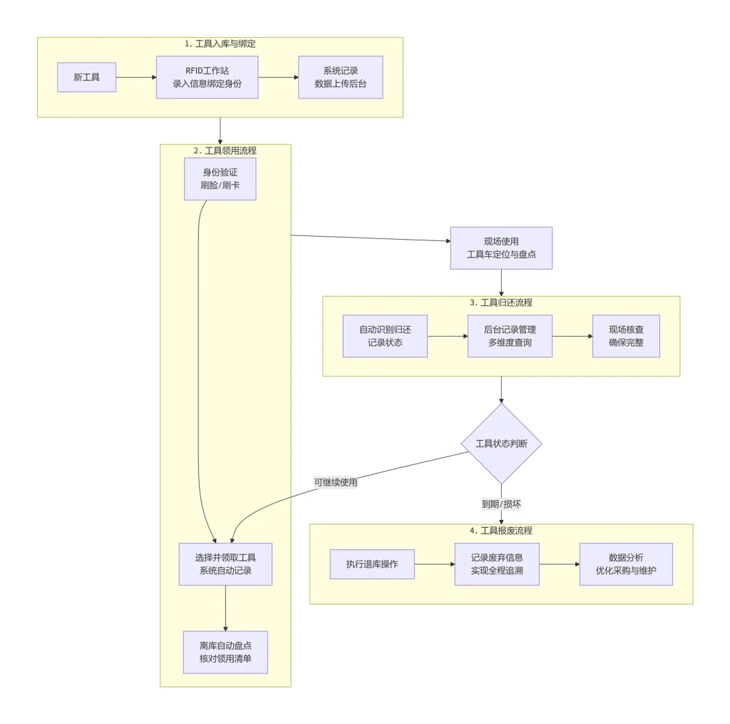 RFID 工具管理系统的价值不在于“设备先进”,而在于——它把原本分散、断开的流程做成闭环: