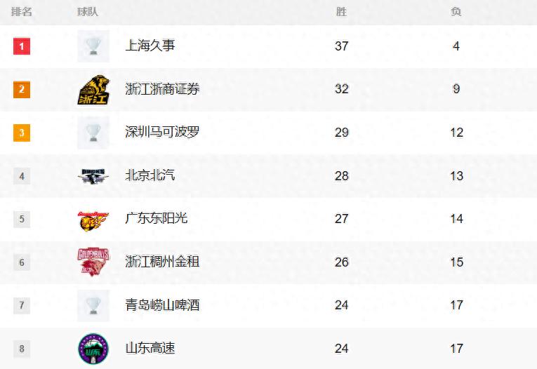 CBA的排名是看胜负关系和积分,一旦进入最后阶段,每一场比赛都会牵动整体格局。