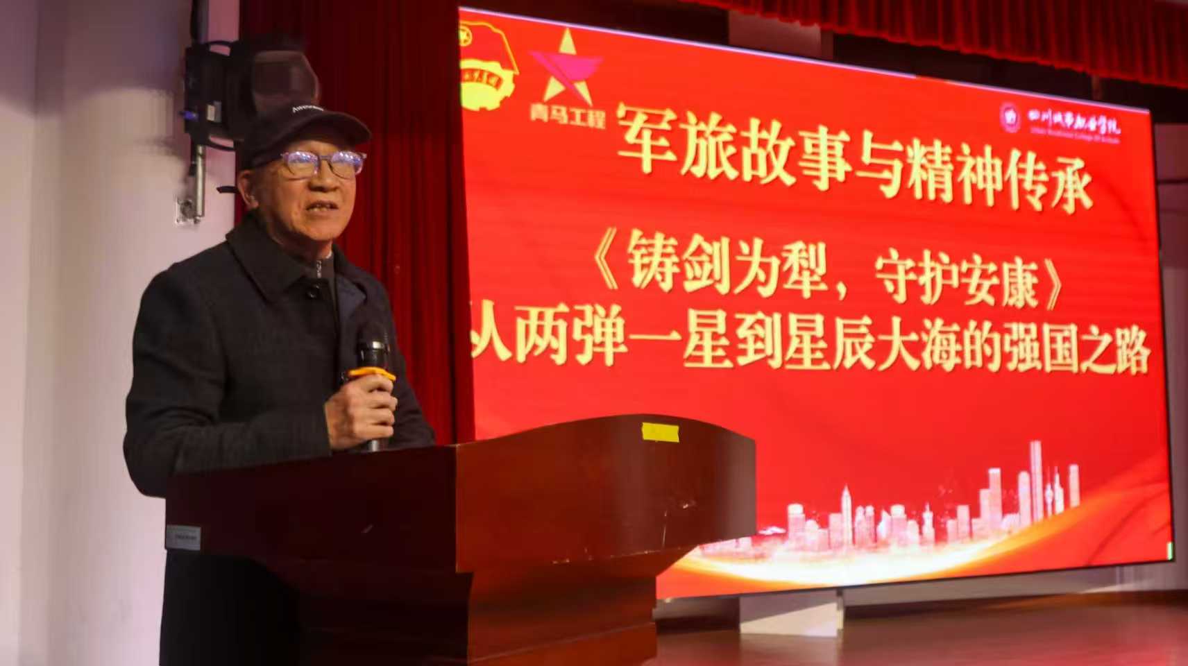 中国人民解放军原总装备部大校、军休干部谢锡华带来《铸剑为犁,守护安康:从“两弹一星”到“星辰大海”的强国之路》这一专题演讲,回顾了我国国防科技从“两弹一星”到如今航空、航天、航海等领域的辉煌成就,讲述了自己戈壁隐名、边疆坚守的亲身经历。这份饱含热血与奉献的分享,让在场学子深切感受到国防建设的艰辛与荣光,更加坚定了技能报国的理想信念。