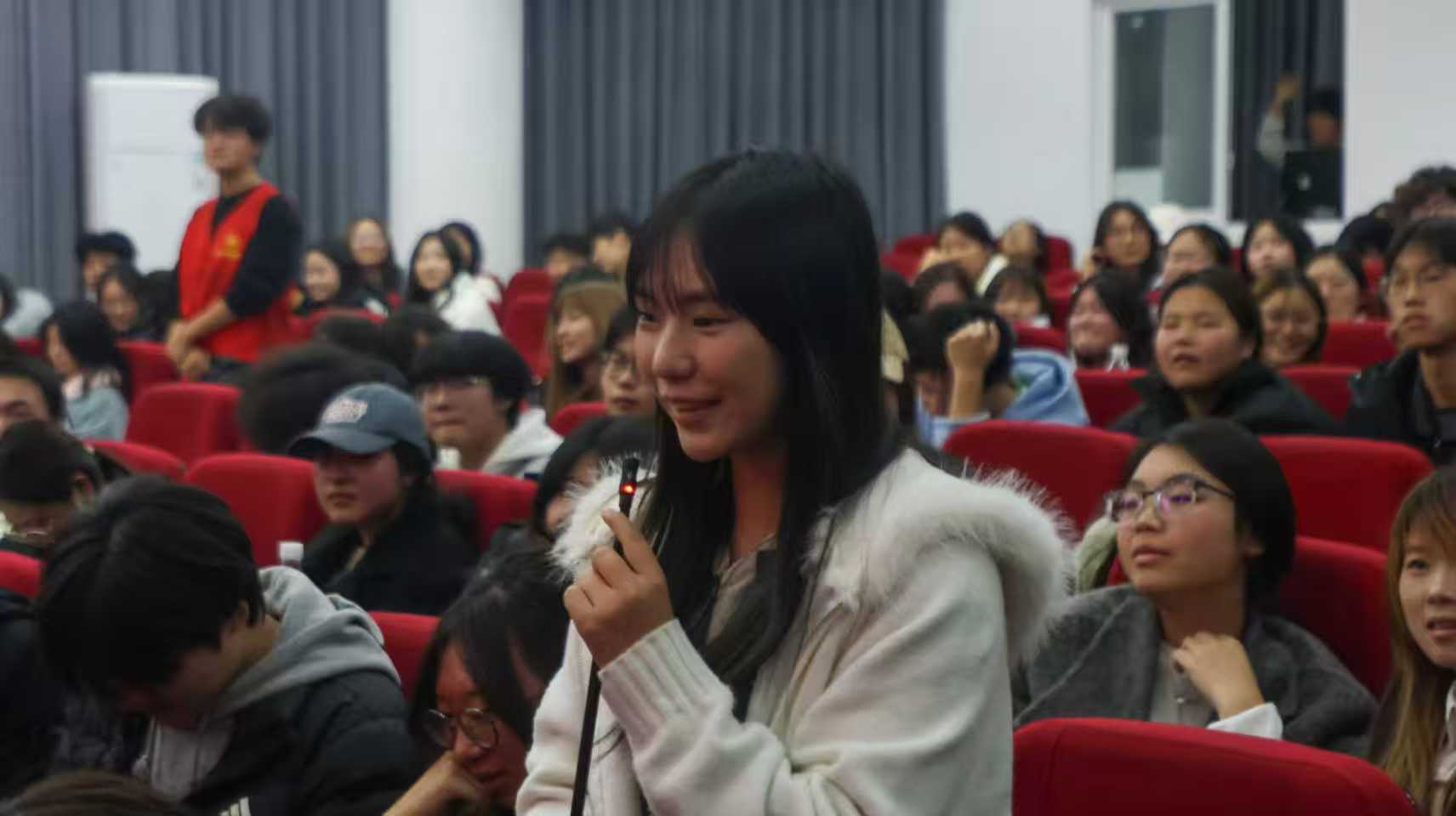 在互动环节,“军魂如何转化为学习动力”“青年应如何践行强国担当”等话题引发热烈讨论。学子们踊跃提问,三位演讲嘉宾的精准回应、深度解读,让在场学子茅塞顿开,“强国担当”变得更加具体可感。