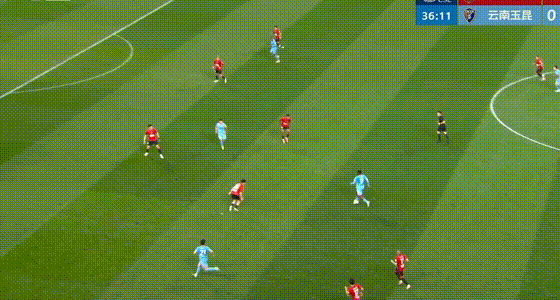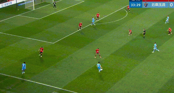 第37分钟,奥斯卡、约尼查、杨梓豪连续配合一脚出球,克莱伯中路包抄破门得分,客场作战的云南玉昆取得1-0领先。