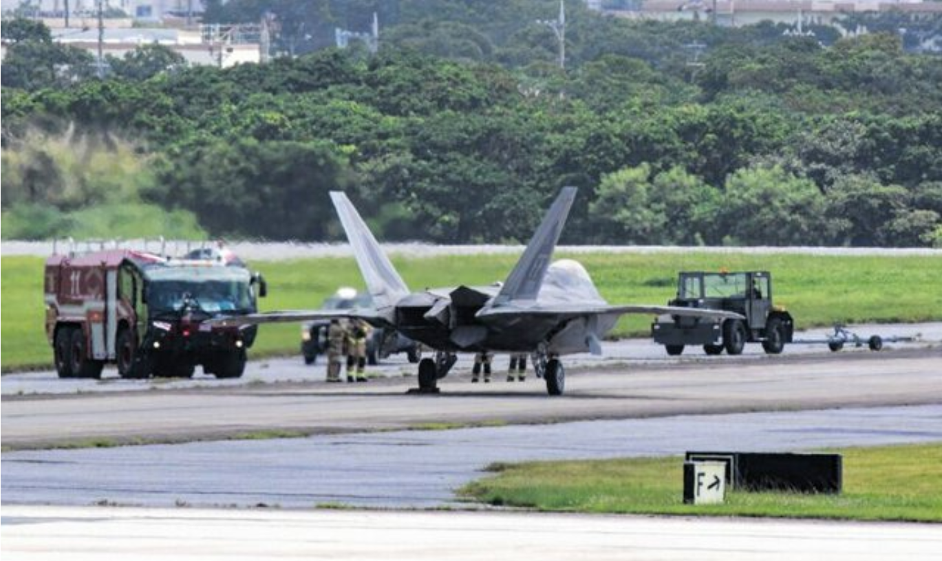 首先,9月20日周五下午,一架隶属于第二十七战斗机中队的F-22猛禽战斗机在冲绳嘉手纳基地进行了“预防性降落”。