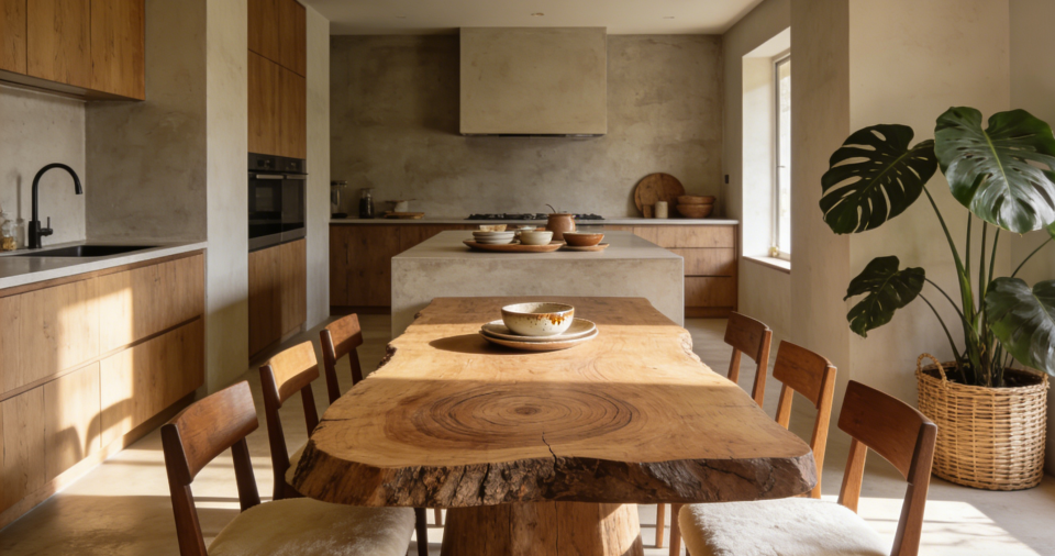 混合使用自然材质(微水泥、天然石材、实木)与柔软材质(绒布、羊毛毯、手工陶艺),粗糙与细腻对比,增强空间故事感。