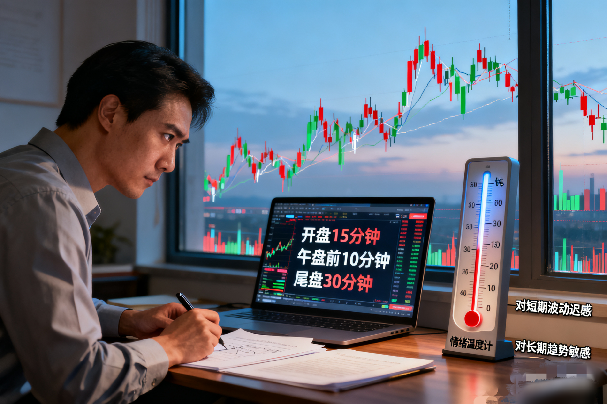 机构交易靠数据和模型,散户的最大敌人从来都是自己的情绪。所谓“心态好”不是空洞口号,而是要修炼“反人性的周期钝感力”——对短期波动迟钝,对长期趋势敏感。建议设定固定看盘窗口,比如每天只在开盘15分钟、午盘前10分钟、尾盘30分钟关注盘面,其余时间专注行业研究和政策解读,避免被主力的日内诱多诱空骗筹;对市场情绪要学会反向敏感,全民热议牛股时警惕顶部信号,市场一片哀嚎时理性审视底部机会;更要对短期盈亏脱敏,接受交易胜率不可能100%,只要整体交易体系的期望值为正,短期亏损就是必然的合理成本。