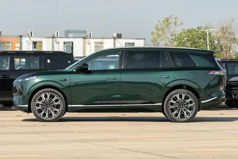 试驾的时候,一眼看见这车,给咱的感觉,这外观没有刻意张扬夺目,而是沉稳大气,自带气场。我们试驾的这一款,外观配色是仙踪绿,灵感源于大兴安岭的森林,这颜色看着清爽自然透着活力,可别小瞧了它,这车漆可是经过了8道涂层处理,又好看还经久耐用。前脸的贯穿式数码臻钻大灯,里面有536颗LED灯珠,解锁时亮起的流动灯语,仪式感满满。21英寸高强度铝合金轮毂不光看着有力量,而且刚度的提升也有助于降低路噪。车身侧面那个隐藏式门把手,精致又时尚,还可以帮着降低风阻,节省点儿能源。车辆长宽高分别为5002mm、1972mm、1732mm,轴距达到3025mm,就这体格儿,开到哪儿也不会被人忽略。车尾部分,标志性的数码臻钻贯灯组与前脸巧妙呼应。这款车风阻系数为0.28Cd,这数字在同级别车型中也是挺亮眼,跑起来又稳又安静,还省能耗提升续航,整车给人的感觉造型扎实又大气,耐看特靠谱。