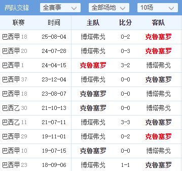 从过往战绩看,克鲁塞罗在心理上明显占优。双方近10次交手,克鲁塞罗4胜4平2负。更重要的是,在主场近6次面对博塔弗戈,克鲁塞罗取得了4胜2平的不败战绩。