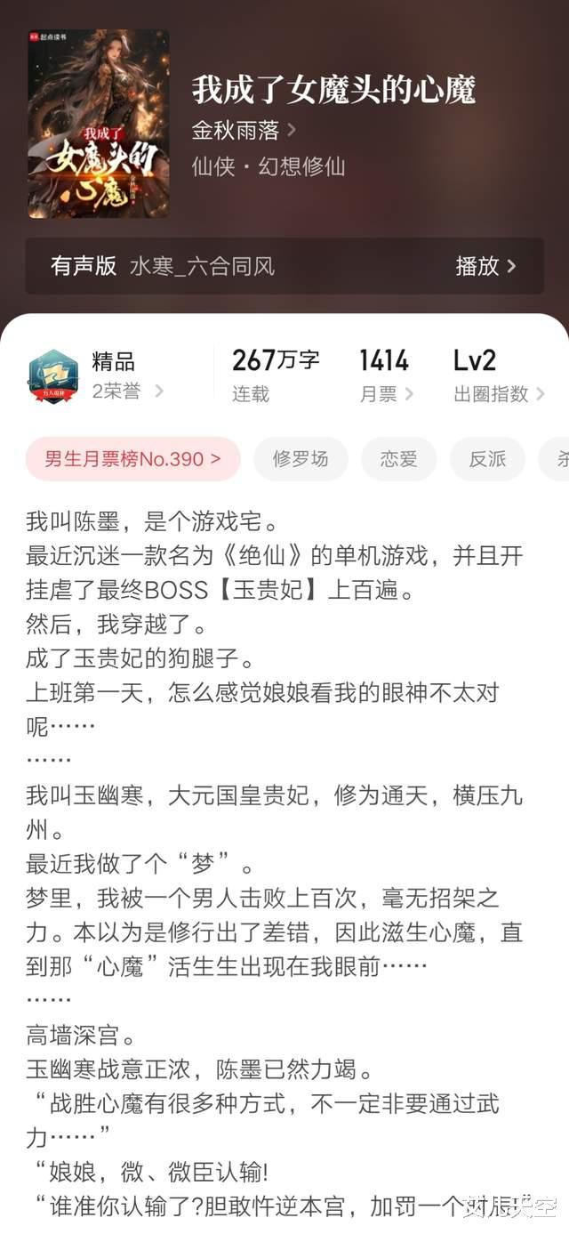 金秋雨落的这本《我成了女魔头的心魔》昨天晚上完结了。