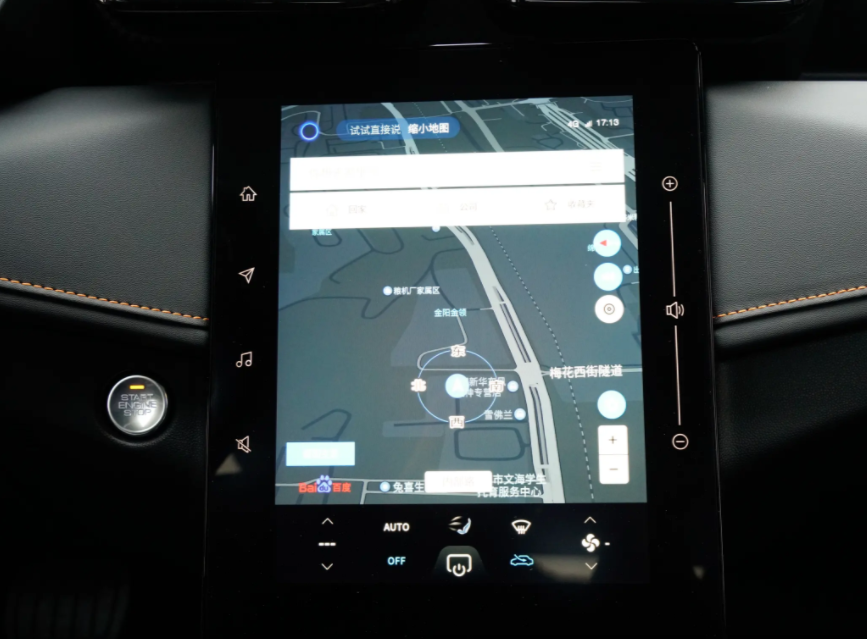 打开车门来到车内,东风奕炫自动致尚版其实还是有一些廉价感在其中的,毕竟它的价格摆在这里,但是黑色的配色,倒是很大程度上抑制了这些廉价感,而在显示屏幕方面,东风奕炫自动致尚版则配备了10.25英寸的全液晶仪表和13英寸的中控屏幕,就科技质感而言,车辆还是不差的,但是中控屏幕的质感就有一些差强人意了,其黑色边幅比较大,而且内部的UI界面设计也比较复古,着实与主流车型有一些差距。