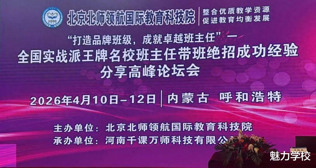 为深入践行学校“开放、融合、共享、创新、创造、梦想”的教育理念,进一步激活班主任工作内生动力,提升班级管理专业素养与育人幸福感,助力打造特色品牌班级、培育新时代卓越班主任队伍,2026年4月11日至12日,呼和浩特市英华学校组织全体班主任赴海亮广场大酒店,参加“打造品牌班级,成就卓越班主任”全国实战派王牌名校班主任带班绝招成功经验分享高峰论坛会,以专业培训赋能班主任成长,以教育家精神引领育人实践。