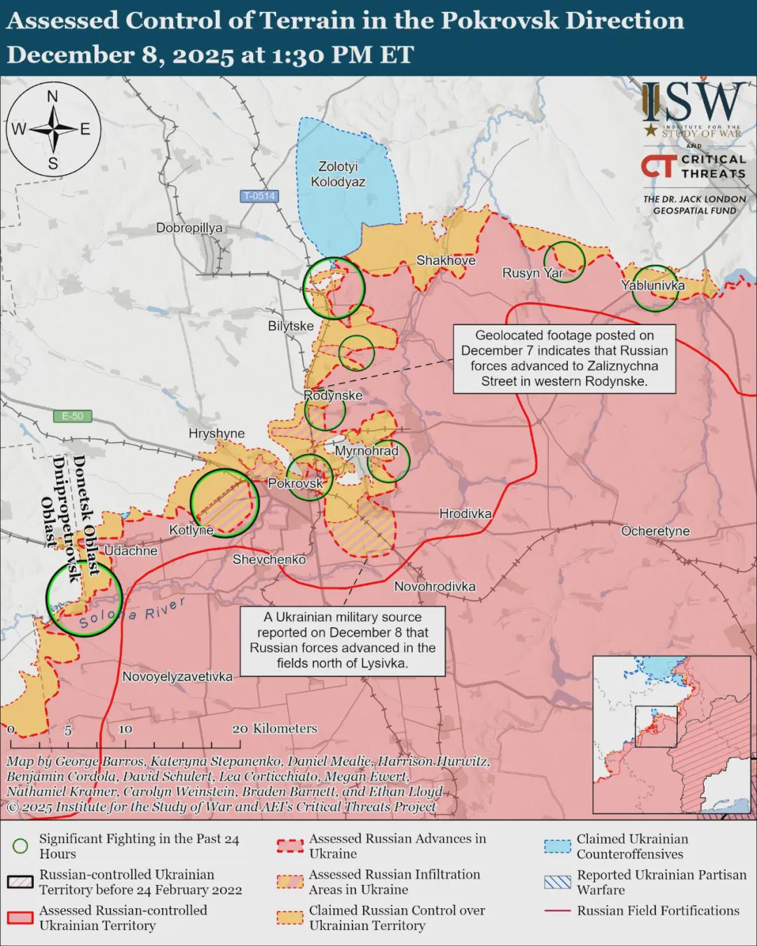 根据美国战争研究所12月8日发布的最新情报,主要有以下关键信息:
