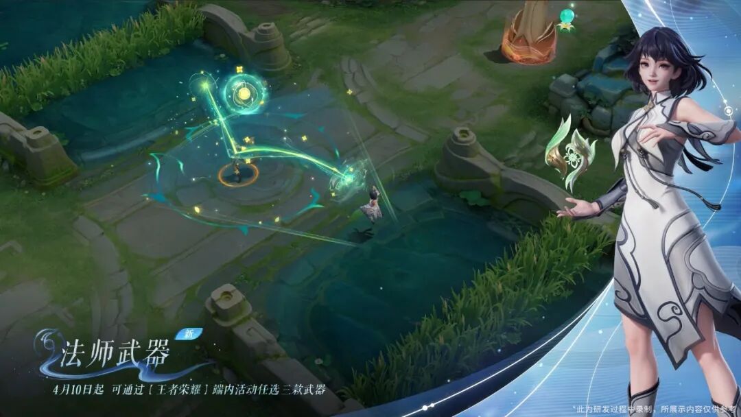 法师武器名为“云梦化灵”,是一个悬浮着的法器造型。类似明世隐、西施这样的。