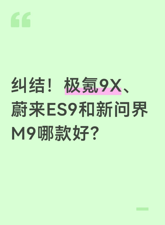 目前主要在考虑极氪9X、蔚来ES9和新问界M9,有没有懂哥懂姐给点意见,这三款车哪款更合适?