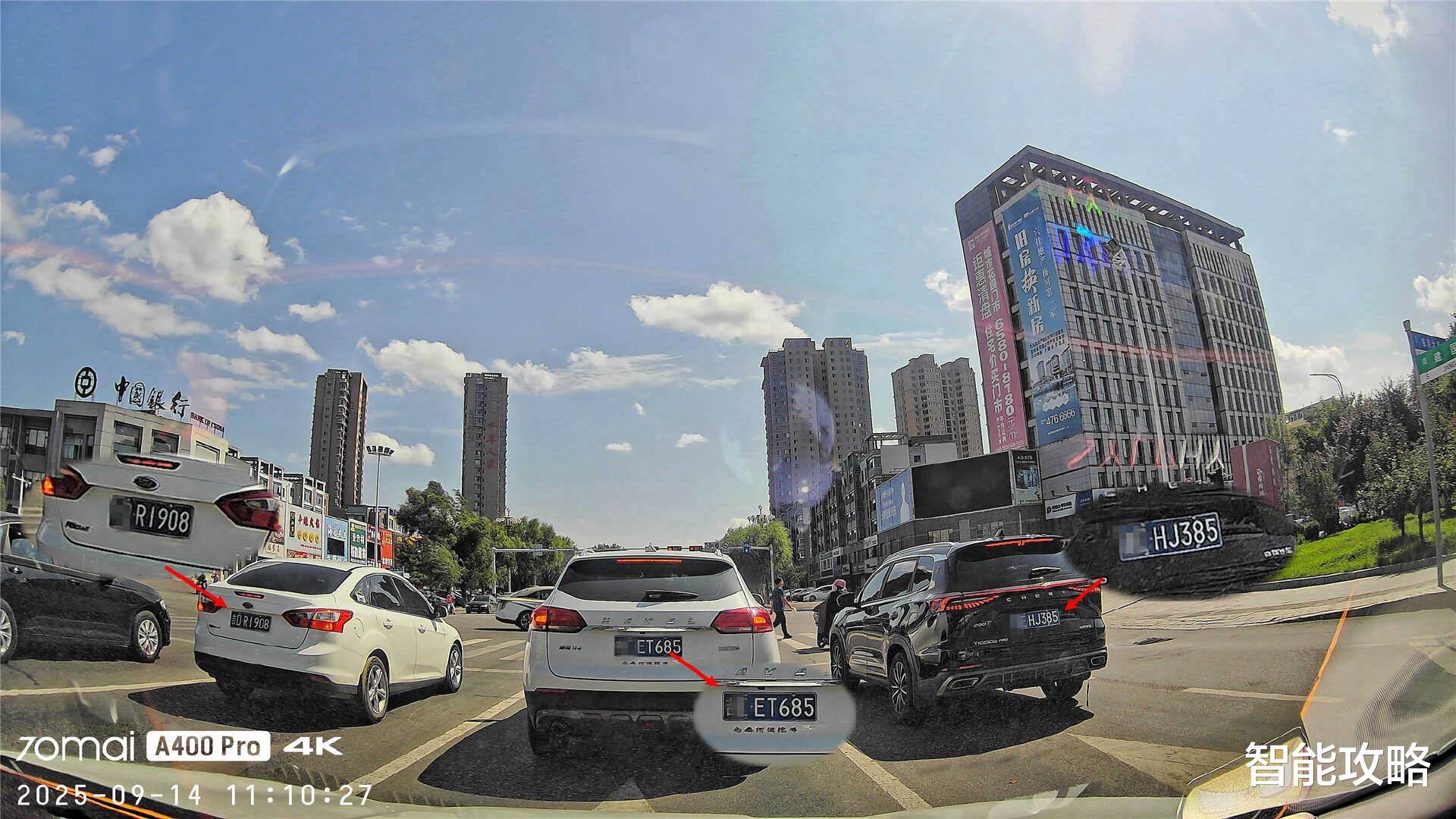 之前的记录仪总说“高清”,但遇到阴天或傍晚,画面就发灰,连前车车牌都看模糊。但70迈A400 Pro 的4K画质,是真的能“较真”的清晰。就算是逆光行进,前车车牌ET685的数字依旧拍的特别清楚,连车牌上的反光点都能看见;就算遇到阴天,云层压得低,路面有点暗,它的智能HDR也能把画面调得透亮,不会像老记录仪那样“一片灰蒙蒙”。