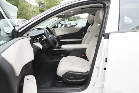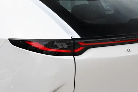 那天到 4S 店的时候,展厅里已经围了不少看车的人,EZ-60 就摆在最显眼的位置,远远一看就跟其他车型不一样。马自达的 “魂动” 设计我一直很喜欢,这次 EZ-60 用了百万级精工曲面,车身线条特别流畅,没有多余的棱角,阳光照在车身上,能看到一层淡淡的光影流动,比同价位那些满是硬线条的车型精致多了。销售说车身上有 9 组贯通式风道,分布在车头、侧面和车尾,刚开始我还以为只是装饰,后来试驾的时候才发现真有用 —— 高速开到 100 码的时候,风噪比我之前开的那辆 SUV 小不少,销售解释说这是风道优化了空气动力学性能,还能间接帮着提升续航,把好看和实用结合到一起,这点确实挺用心。