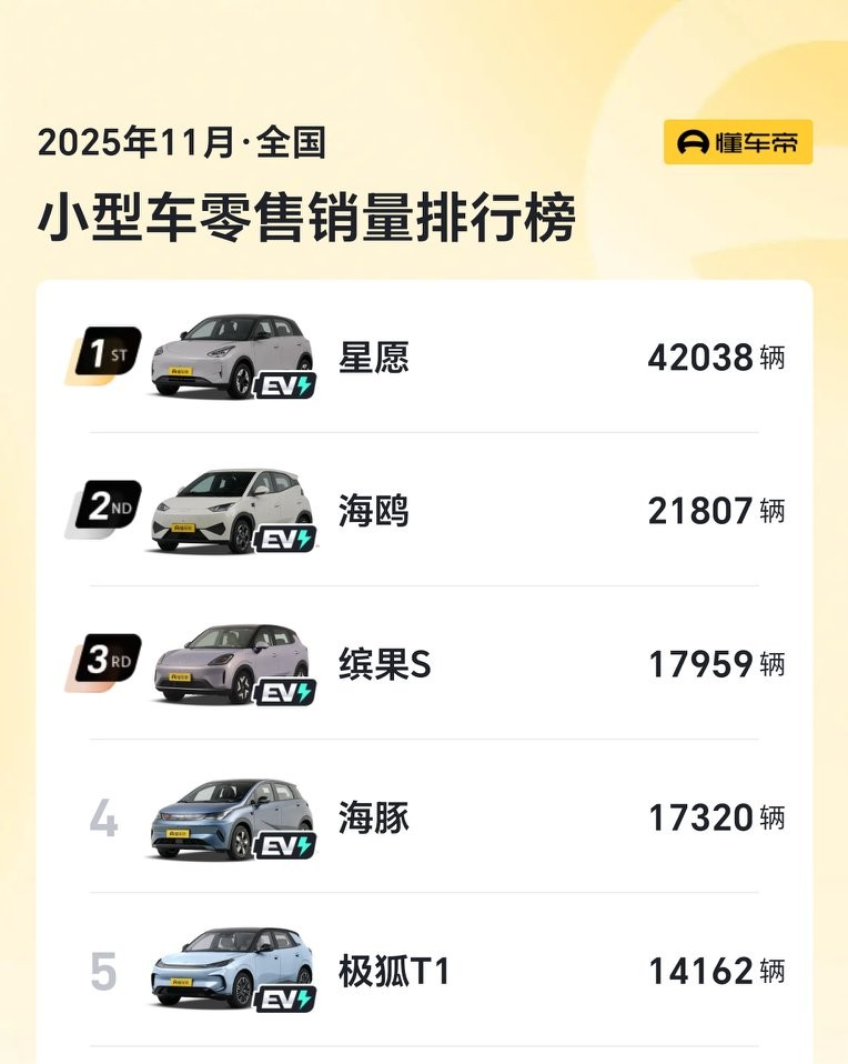 小型车销量走高不是小型车没有市场,只是燃油车没有市场。最近几个月纯电小型车的累计销量均超过15万辆。