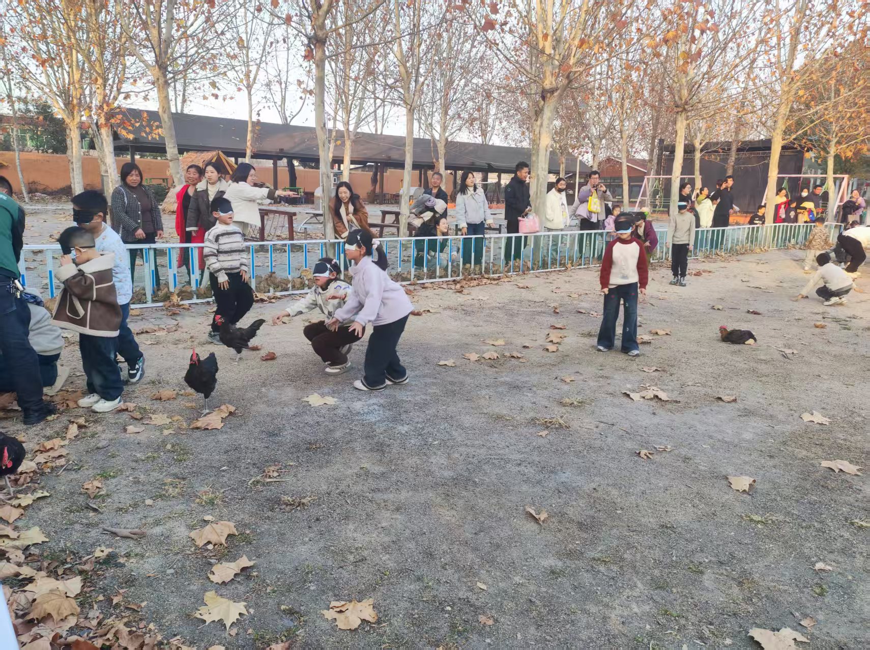 蒙眼抓鸡大挑战“左边!右边!快抓住!”围栏外家长们的指挥声此起彼伏蒙着眼睛的孩子们凭感觉摸索每一次扑空都引来善意的笑声每一次成功都赢得满堂喝彩这是勇气与技巧的双重考验