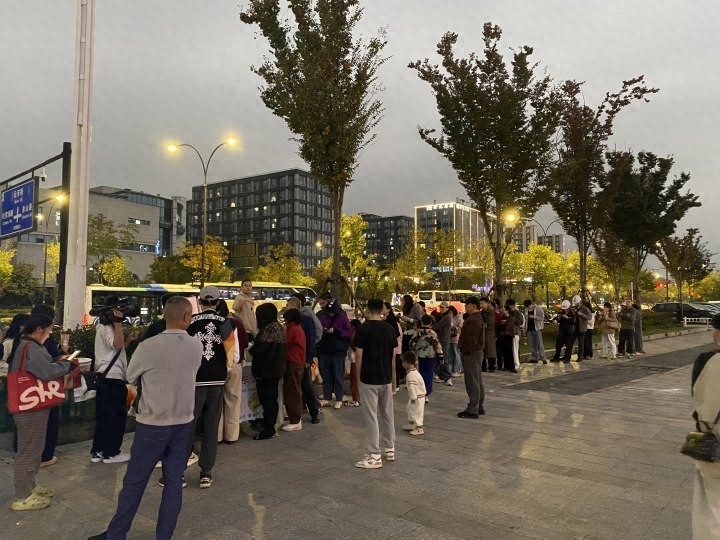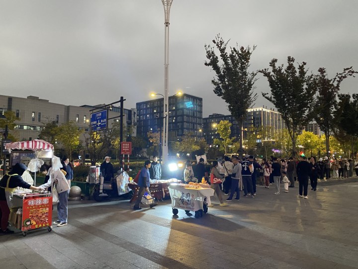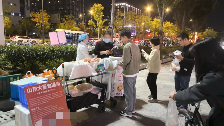 昨天下午,橙柿互动再次来到象山国际广场,下午5点出摊的山东大包,不到20分钟排起了长队。