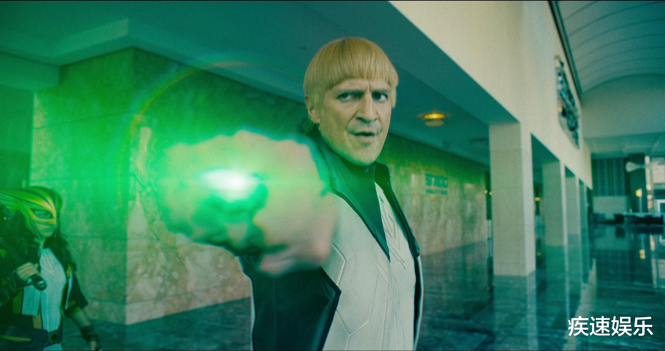 再看看片里的锅盖头“绿灯侠”,成为了地球上一个财团赞助的什么“正义帮”的成员!?