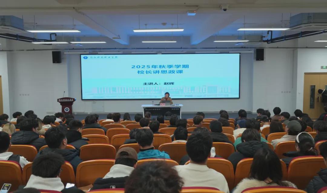 为深入学习贯彻党的二十届四中全会精神,贯彻落实校领导带头讲思政课的相关要求,12月5日,信阳科技职业学院校长赵辉教授以“技能成就梦想,匠心报效祖国”为题,为全校学生干部带来一堂立意高远、贴近高职院校学子成长实际的专题思政课。