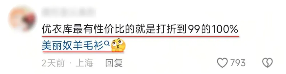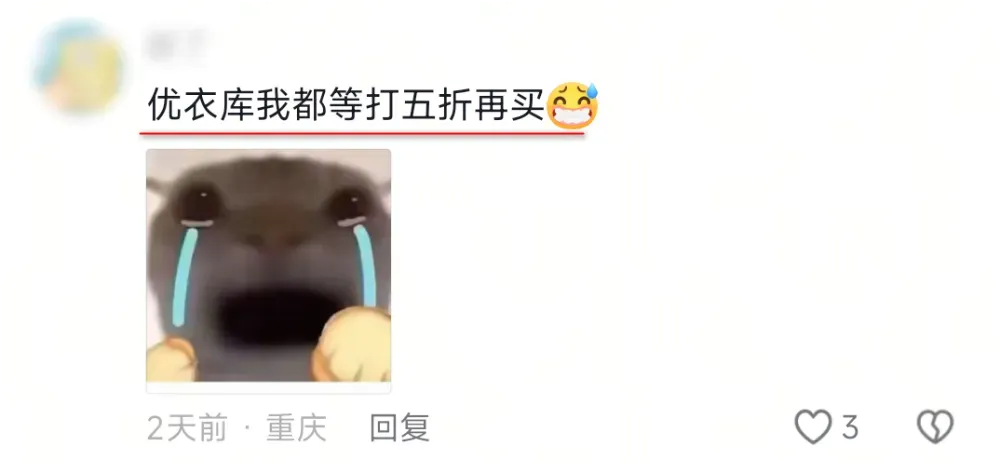 优衣库的“极致性价比”一定是建立在打折价的基础上。有经验的人都知道,至少要在原价上除以2或者是3。