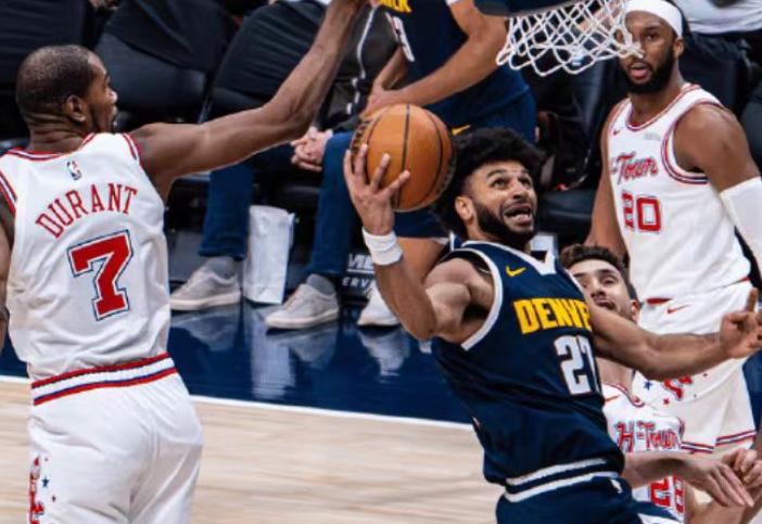 休息回来火箭迫近了比分,但是让布朗抢断上篮得手,三节结束还是以86-89落后。末节大决战约基奇和默里帮助掘金稳住阵脚,火箭依靠阿杜、申京保持悬念。默里两罚一中帮助掘金领先1分,申京强打内线反超一分。阿门在篮球还没有发出来的时候犯规,默里罚中扳平比分,约基奇失绝杀,双方117-117进入加时赛。加时赛默里拿到了6分,约基奇虽然6犯离场,但火箭没有命中绝平球,最终掘金128-125双杀火箭,豪取5连胜,稳居第二名。