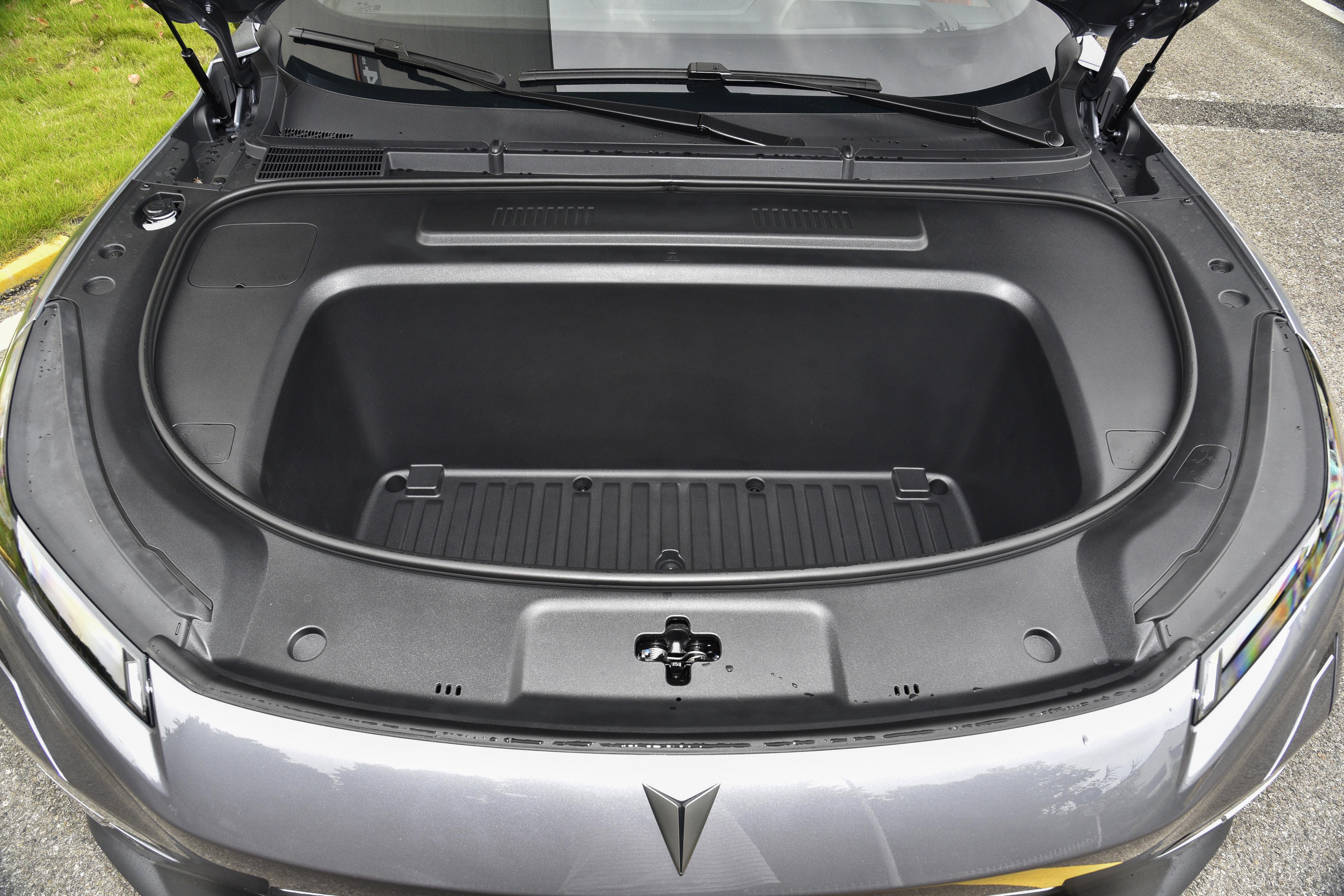 车身侧面看着很舒展,有两条平行的腰线从车头拉到车尾,让车身显得有往前冲的样子,不臃肿,门把手是藏起来的,解锁车子时会自动弹出来,关上门又缩回去,这样设计不容易积灰,还能减少风阻。车门是无框的,跟有些运动型轿车一样,开关门的时候,玻璃会自动降下一点,关上门再升回去,用着很顺手。车轮用的是低风阻轮圈,样式普通,但对减少风阻有帮助,官方说这款车的风阻系数能到0.25Cd,这个数字大家可能没概念,简单说就是风阻小了,跑高速时车更稳,也能省一点电。