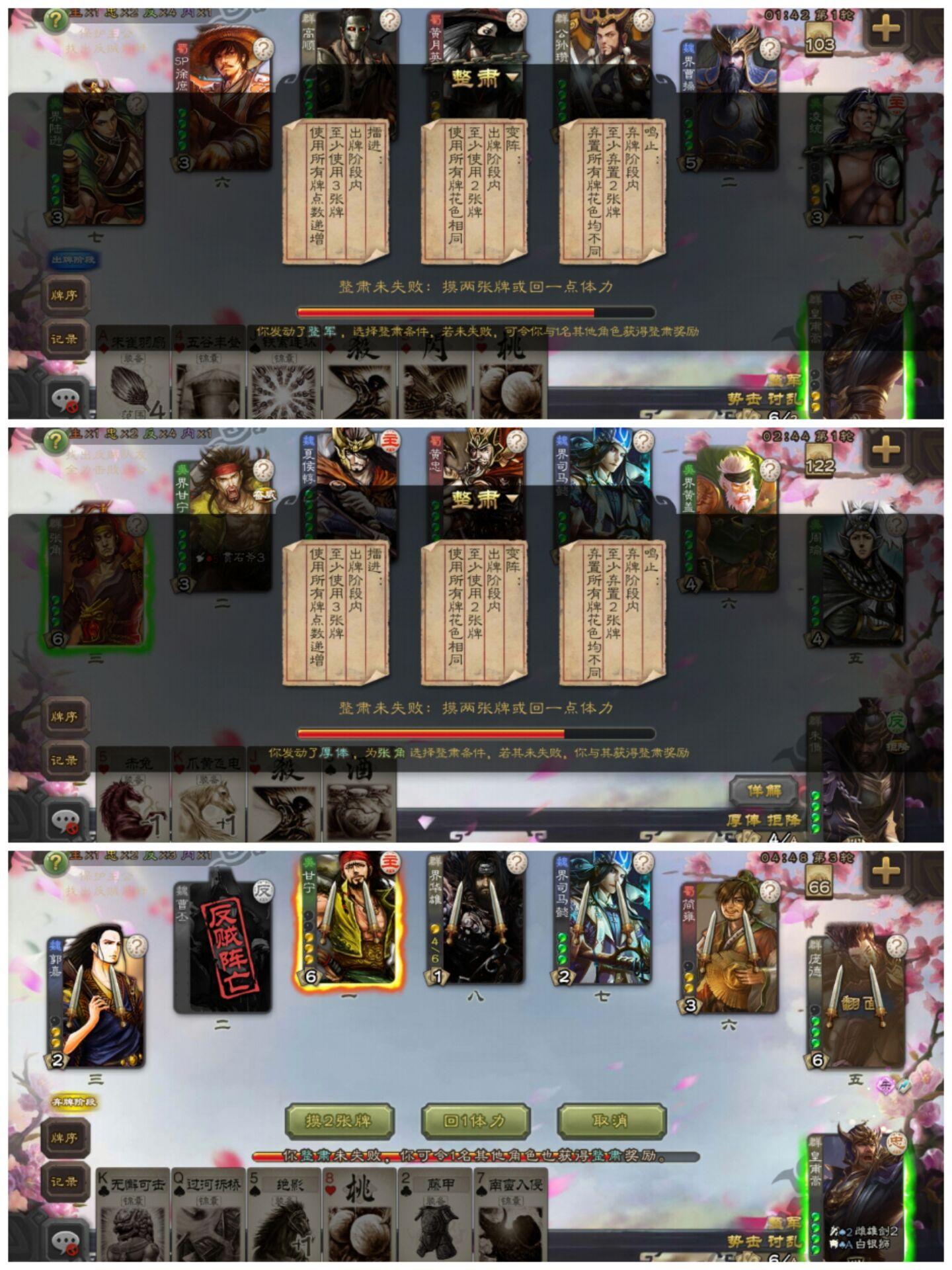 擂进:出牌阶段内至少使用3张牌,点数递增
