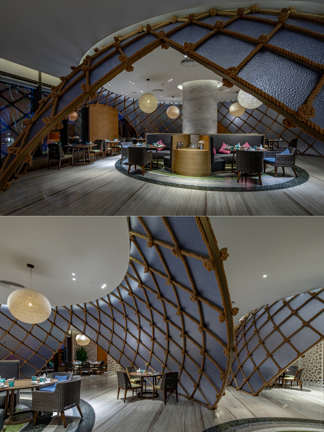 晚餐我在海角壹号中餐厅品尝象山本地风味,极具特色的渔网造型把大厅分割成多个区域,用餐环境很不错。