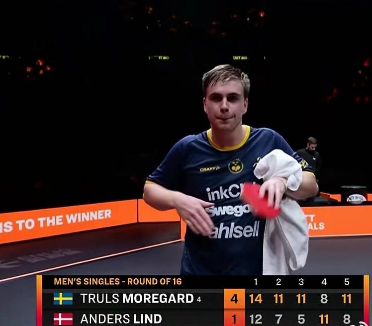 第四个晋级的是瑞典名将莫雷高德。小莫的对手是丹麦的林德,这次比赛莫雷高德打得算是比较轻松,上来就取得了大比分3-0的领先,最终是以4-1晋级八强的。
